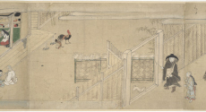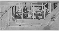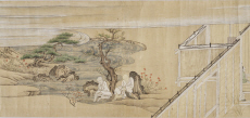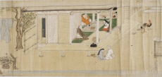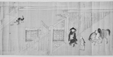 - 病人に対峙する僧,侍者(僧,女人),鶏,邸内