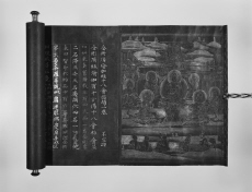 | 品質・構造・形状 | 紙本 楮紙 紺紙 金泥書 銀泥書 見返絵(金泥 銀泥) 巻子 / 銅製 鍍金 (軸) | ||||||