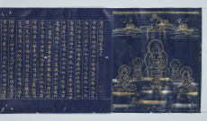 | 品質・構造・形状 | 紙本 楮紙 紺紙 金泥書 見返絵(金泥 銀泥) 巻子 / 銅製 鍍金(軸) | ||||||