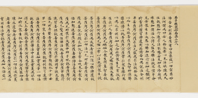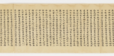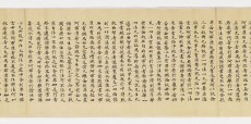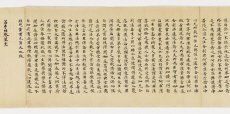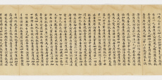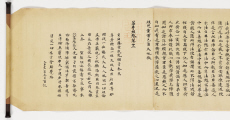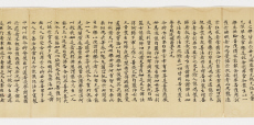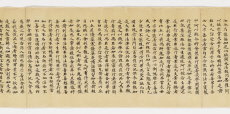 | 品質・構造・形状 | 紙本 麻紙(黄染) 墨書 巻子 / 木製 紫檀材 (軸) |