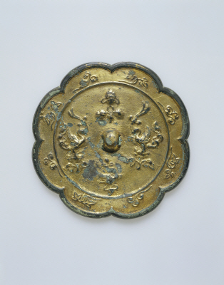 | 品質・構造・形状 | 銅製 鋳造 鍍金 八花形 花禽双鸞文 |