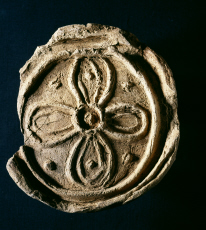 | 品質・構造・形状 | 瓦製 土製 型押(蓮華文) 焼成 素焼 | ||||||