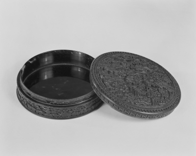 | 品質・構造・形状 | 玳瑁製 彫出 人物楼閣文 |
