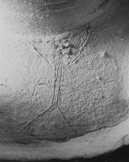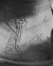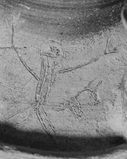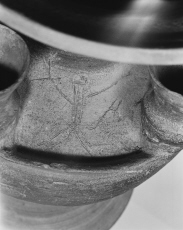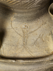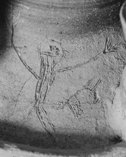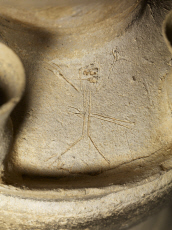 - 壺線刻部分(両手を挙げる人物と小動物)