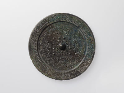 | 品質・構造・形状 | 銅製 鋳造 流雲文縁方格規矩鏡 |