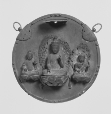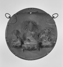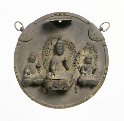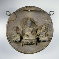 | 品質・構造・形状 | 銅製 鍍錫(鏡板) 銅製 鍍金(覆輪・仏像) |