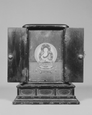 | A026711 | 厨子軸部(上部画面から切れる)、内部板壁2枚(宝篋印塔、中台八葉院彩絵面)、納入経8帖分 | 4×5 | モノクロ | |