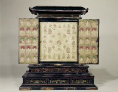 | 備 考 | 舎利容器面、絹本着色不動明王・愛染明王像を貼付(扉絵、二天王) 他面軸部に紙本著色八字文殊曼荼羅を貼付(扉絵、如来像) |