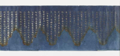 | 品質・構造・形状 | 紙本 紺紙(麻紙) 銀字 巻子 |