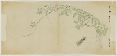 | 銘文等の註記 | 扇面内右下「省古作」(朱文方印「省古」) 扇面外側右墨書「合作下繪 郁子之図」「昭和三年正月」 |