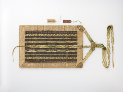 | 品質・構造・形状 | 竹製 雲母引 縁:絹製 錦織 金具:銅製 鍍金 木牌:木製 |