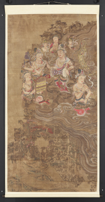 アミダニジュウゴボサツライゴウズ(モホン)(サフク) 阿弥陀二十五菩薩来迎図(模本)(左幅)