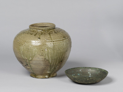 カイユウタンケイコ・ドウワン(カイユウタンケイコツケタリ)(デンイバラキケンイシオカシシュツドヒン) 灰釉短頸壺・銅鋺(灰釉短頸壺附)(伝茨城県石岡市出土品)